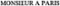 Le n° SIREN 419 754 254 désigne le siège de la société MAP qui dispose d'un autre établissement. Cette société a enregistré la marque MONSIEUR A PARIS le 09 décembre 2011 dans les classes 35, 03 et 09 (marque enregistrée).