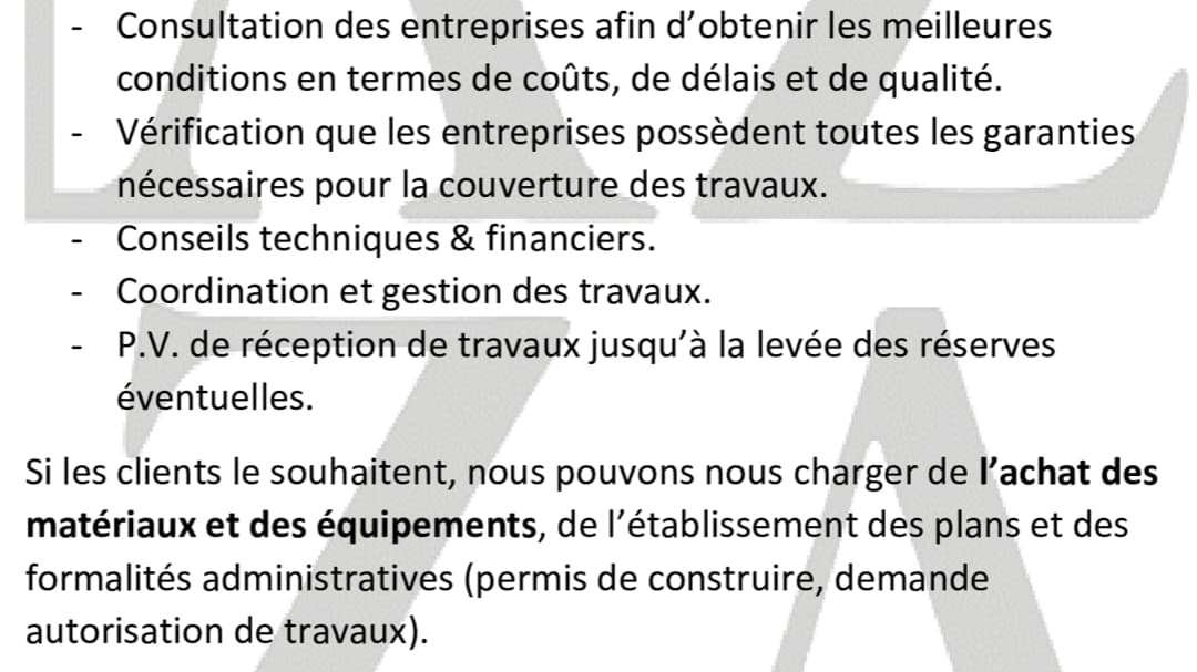 Maître d'oeuvre / A.M.O CONSTRUCTION - RENOVATION - EXTENSION. - Gestion des travaux Tous Corps d'Etat - Conseils techniques & financiers - Elaboration des plans - Formalités administratives (permis de construire...)